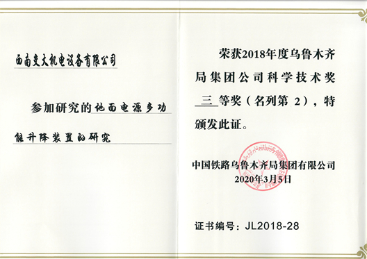 交大机电--地面电源多功能升降装置的研究-奖励证书